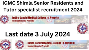 IGMC Shimla Senior Residents and tutor specialist recruitment 2024 Applications are invited from all the candidates fulfilling the …